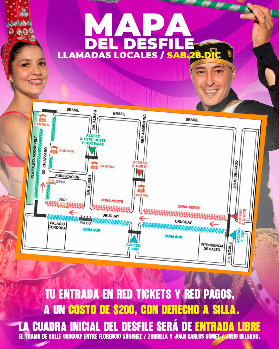 Las entradas siguen a un precio de $200 con derecho a silla y ya están a la venta en las plataformas de Red Tickets y en las casas de Red Pagos. Desde la organización recomiendan asistir con anticipación para facilitar el ingreso y ubicar tu sector con comodidad.